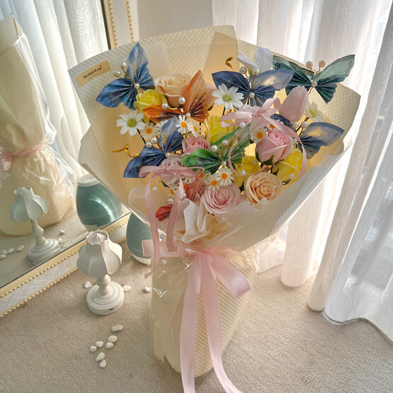 Cash butterfly w soap flower bouquet 02
