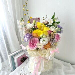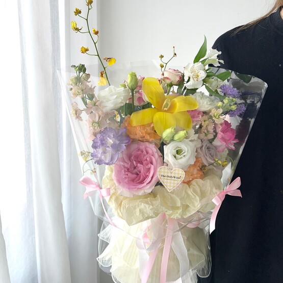 Fresh Flower - Rose, spray rose, eustoma, tulip, matthiola, carnation, ping pong, lace flower, ranunculus, panicum, fountain grass, dancing lady and foilage