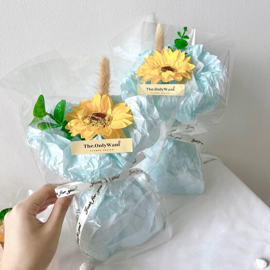 Soap flower - Sunflower, bunny tails and eucalyptus