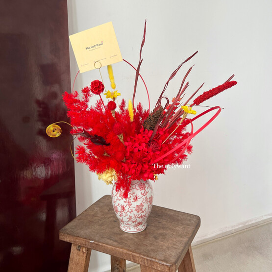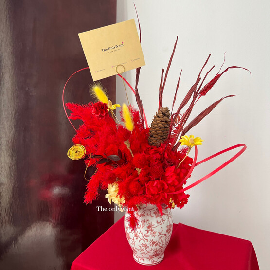 Vase, premium dried flower and gold deco.