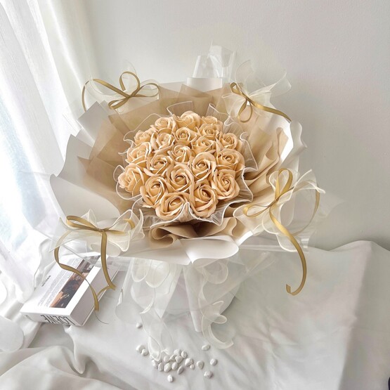 Soap flower - 20 stalk cappuccino rose | Ribbon deco ; Fresh flower - 20 stalk cappuccino rose | Ribbon deco