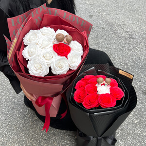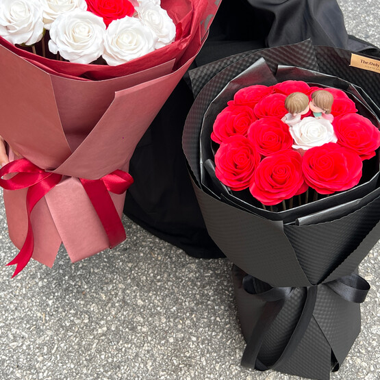 Soap flower - 11 roses and couple model set. ; Fresh flower - 11 roses and couple model set.