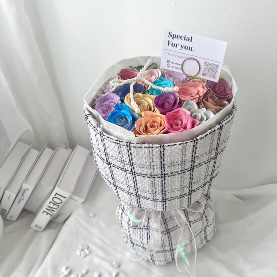 Fresh flower - 20 stalk spray colour roses | Pearl ribbon deco