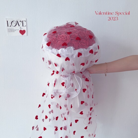 Soap flower - 20 stalks red roses | Love logo wrapper net ; Fresh flower - 20 stalks red roses | Love logo wrapper net