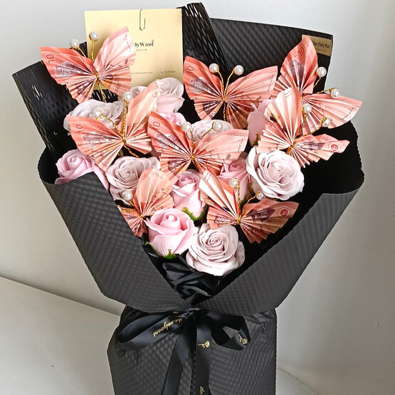 Soap flower - roses (1pcs cash butterfly make by 2 pcs cash note)