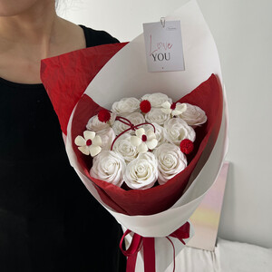 Soap flower - 13 white rose and dried flower  ; 13 white rose and dried flower