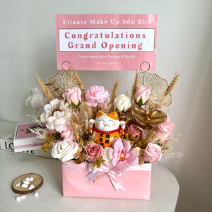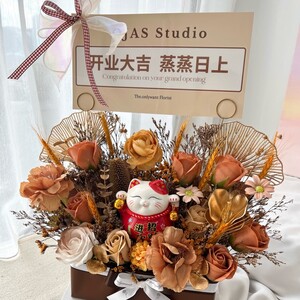 Soap mix artificial flower - Rose, gardenia, hydrangea, gold fan and phalaenopsis orchid, side flower and fillers | Lucky cat | Flower box