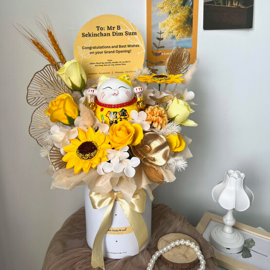 Soap mix preserved flower - Sunflower, rose, hydrangea, deco fan and fillers  | Lucky cat | Flower box