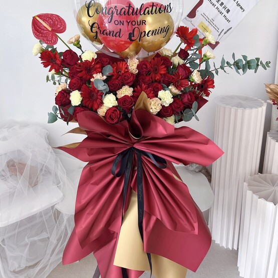Fresh flower -  Rose, carnation, gerbera, anthurium and eucalyptus. | 18 inch Balloon | Flower wood stand