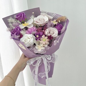 Soap mix preserved flower - Rose, carnation, hydrangea, hana, bunny tails, phalaenopsis orchid and foilages
