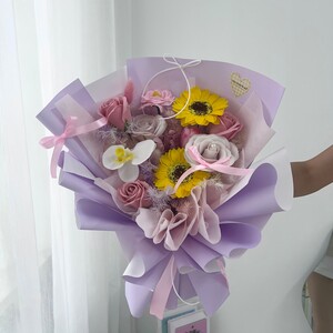Soap mix preserved flower - Rose, sunflower, tulip, hana, phalaenopsis orchid, bunny tails and fish leaf